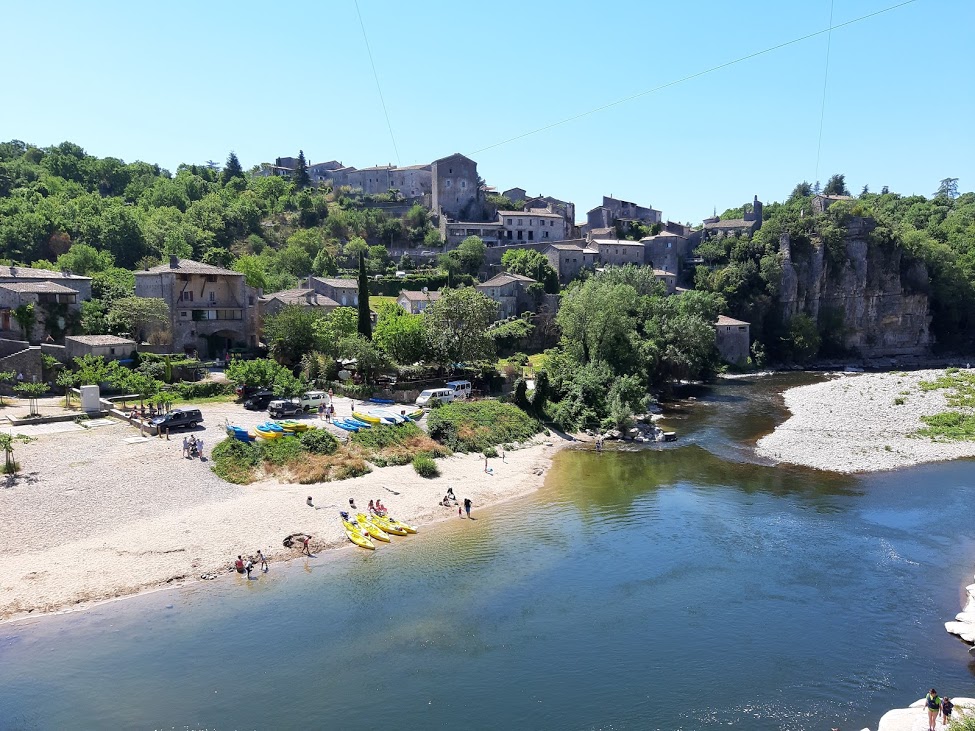 A Balazuc on se balade dans les ruelles pavées bordées de maisons en pierres et jolies voûtes, on s'arrête chez les nombreux artisans, et on se baigne !