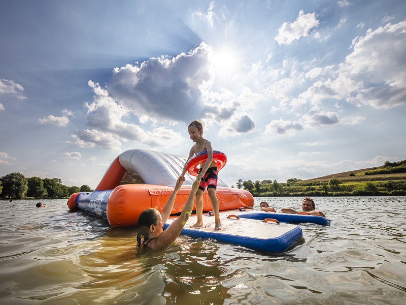 Base de loisirs et son plan d'eau de 35 ha, Accès Gratuit., Chemillé offre de nombreuses activités aux petits comme aux grands et propose un large espace vert pour pique niquer au bord de l'eau., 2 aires de jeux pour enfants de 2-6 ans et 6-12 ans,Aire de baignade surveillée en Juillet et Août de 14h à 19 h, pendant ces 2 mois, «Nagez.