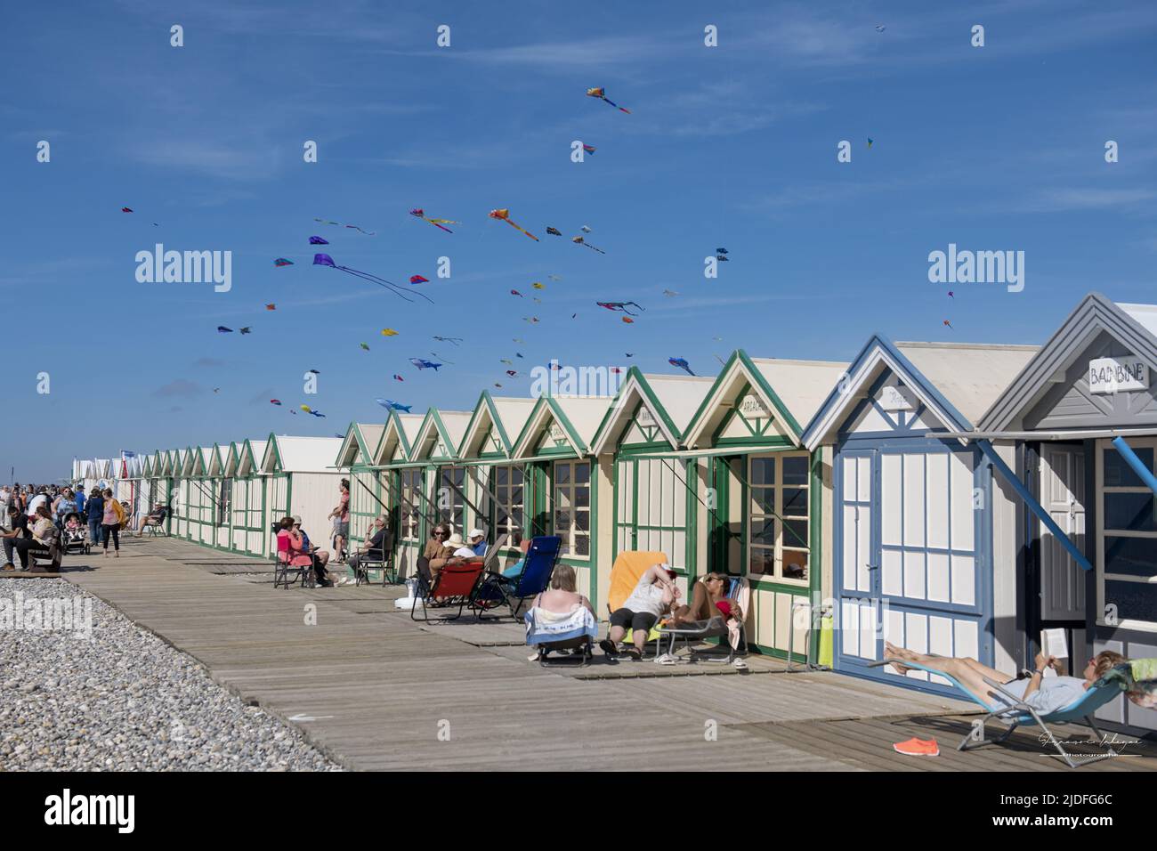 Cerf volants et festival à Cayeux sur mer, les cabines au bord de l'eau Stock Photo Alamy