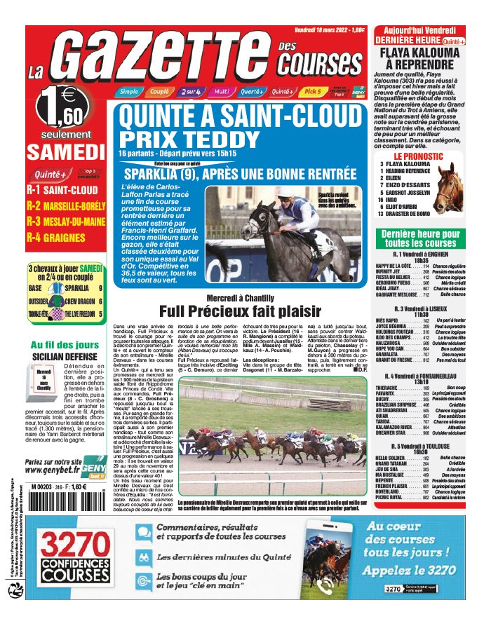 La Gazette des Courses N°20220318 du 18 mars 2022 à télécharger sur iPad