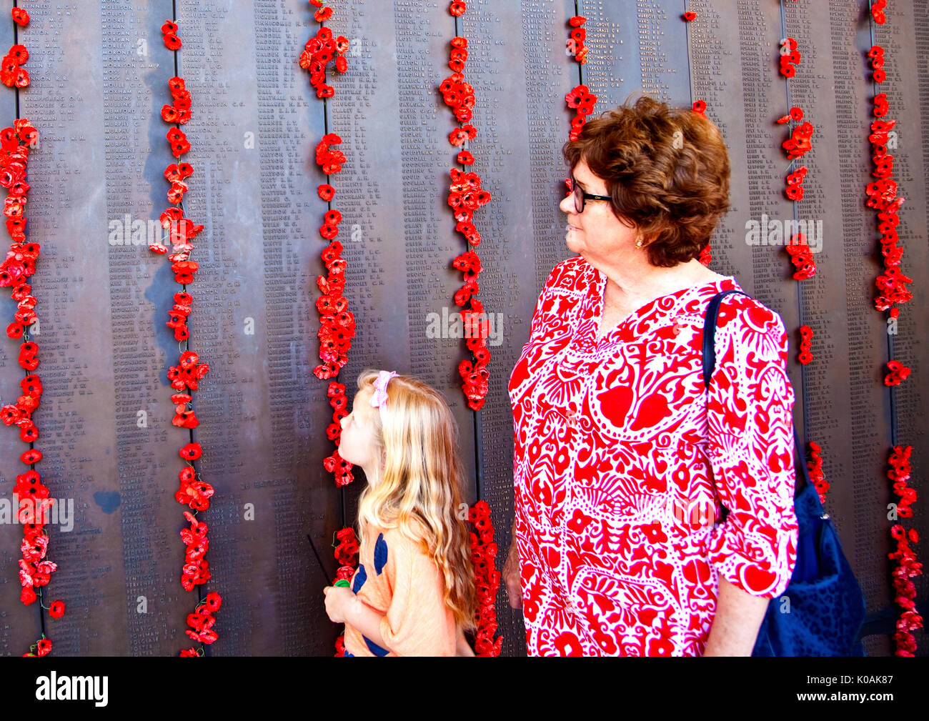 Grandmère et petitefille d'examiner Tableau d'honneur au Mémorial Australien de la guerre à