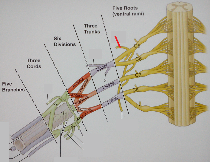 The dorsal scapular nerve is a branch from the C5 root of the brachial plexus and supplies the rhomboid muscles. Gross anatomy Origin Posterior aspect of the C5 root of the brachial plexus. Course It courses through scalenus medius then acco.