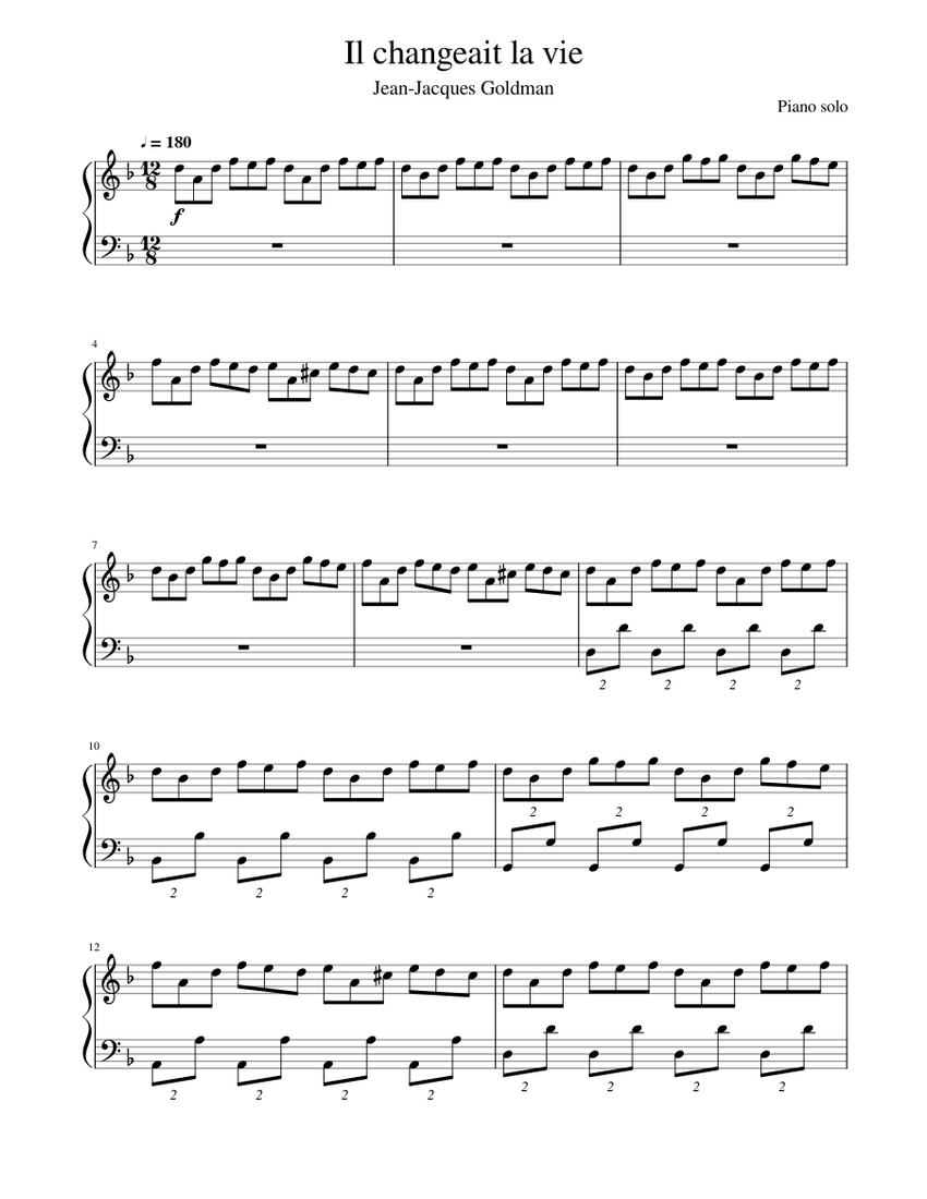 JeanJacques Goldman Il changeait la vie Sheet music for Piano (Solo)