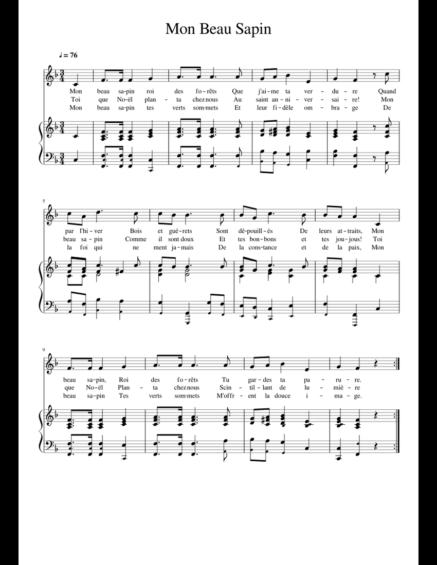Off. 100%. F, d. Download and print in PDF or MIDI free sheet music of Mon beau sapin - Misc Traditional for Mon Beau Sapin by Misc Traditional arranged by nodot for Piano (Solo)
