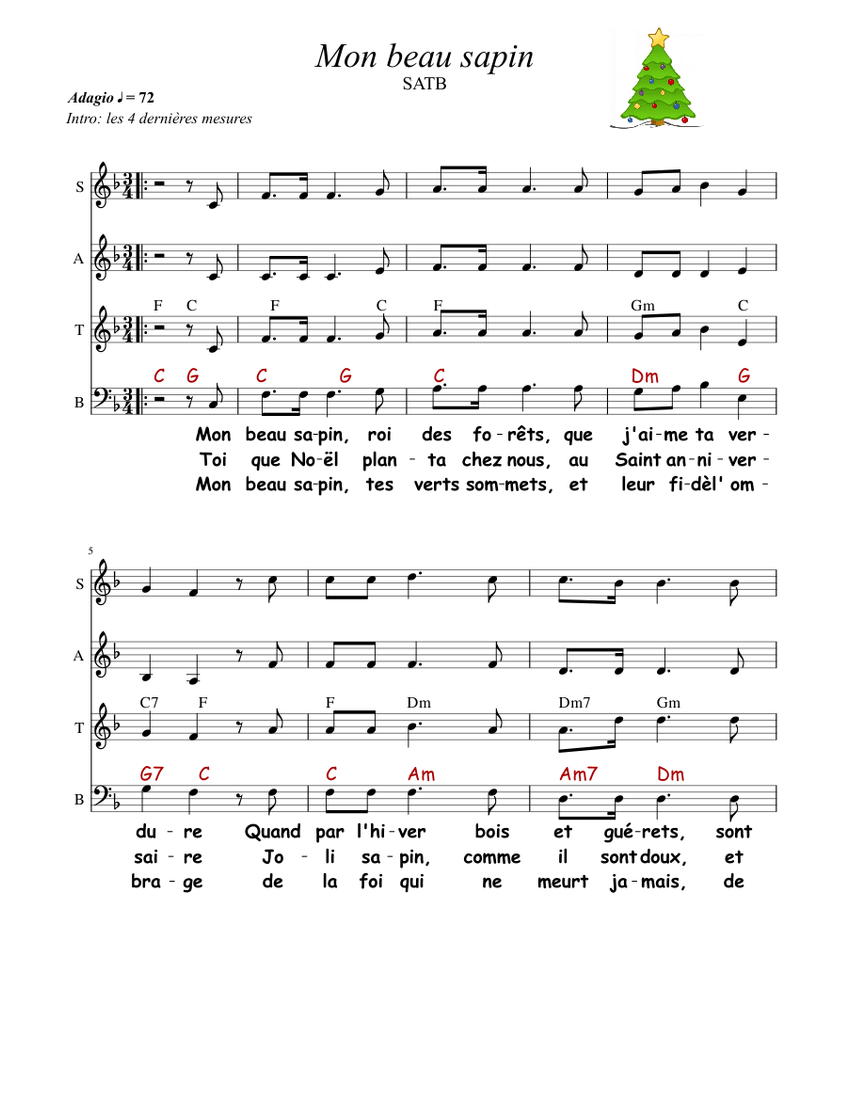 Mon Beau Sapin par Christmas Carol Piano, chant & accords de guitare - Partitions numériques. Mon Beau Sapin. par Christmas Carol. Piano, chant & accords de guitare - Partitions numériques. $4.99. Taxes/TVA calculées lors de la validation de la commande. Ajouter au panier.