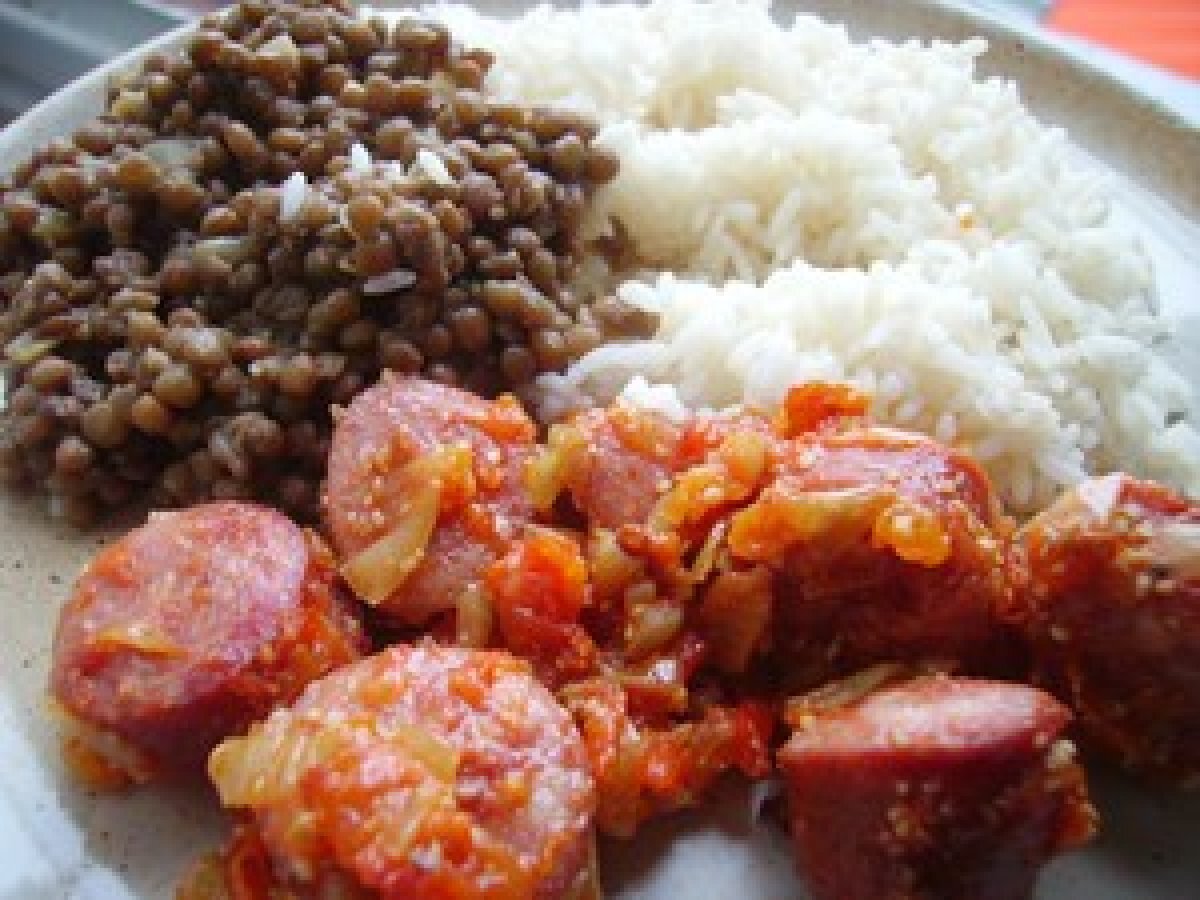 Rougail saucisse, lentilles de cilaos et son riz Recette Ptitchef