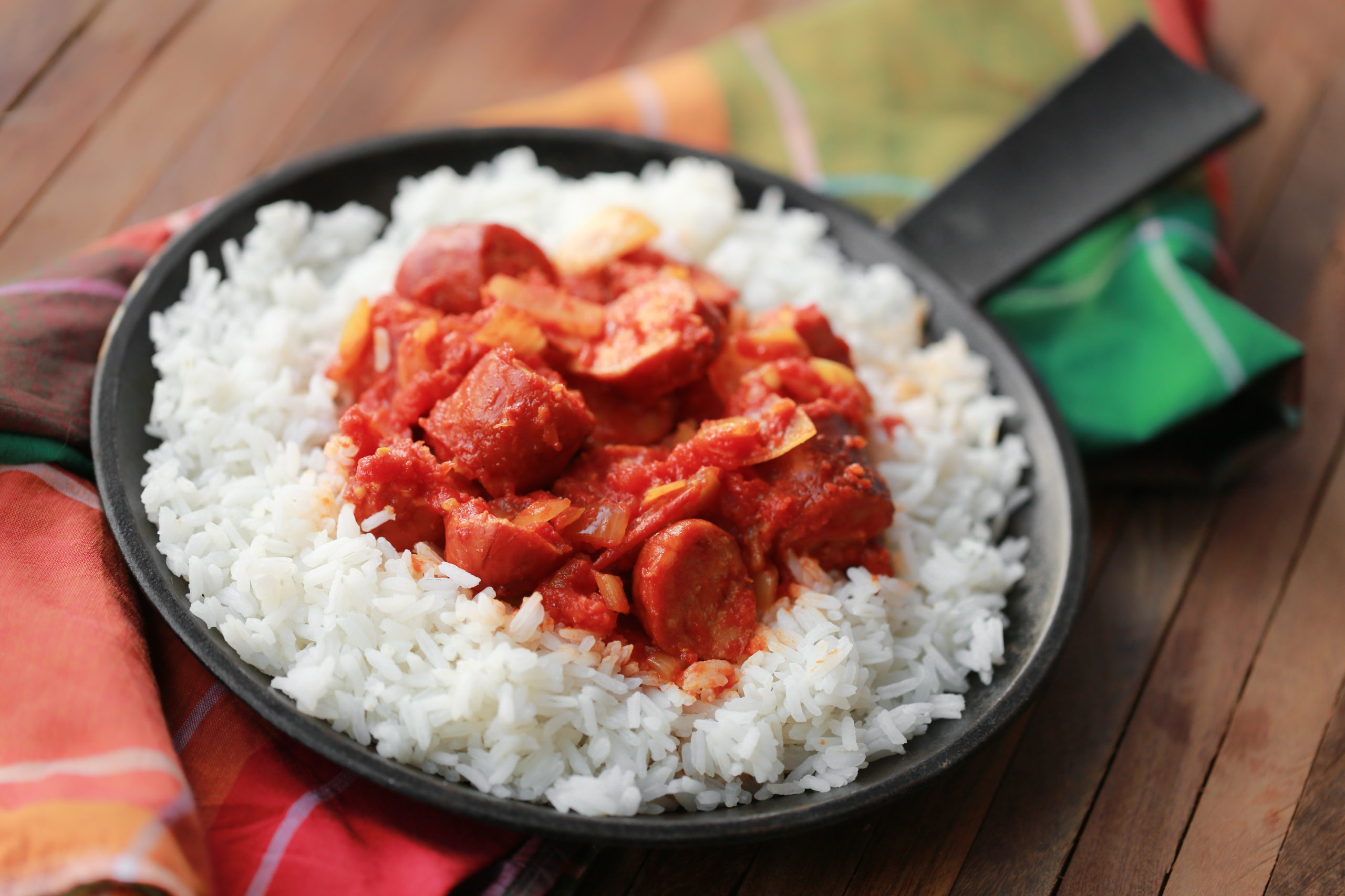 Rougail Saucisses avec son riz créole Les 1001 saveurs de Jérome Traiteur Libourne