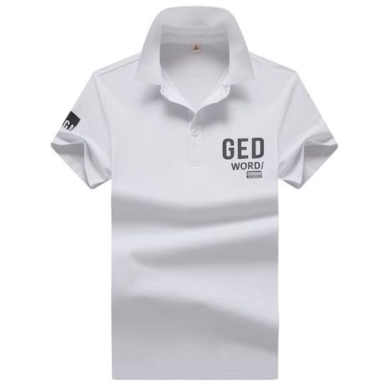 Polo Homme Col revers Coupe droite Manches courtes Casual Couleur unie Lettres imprimé Blanc